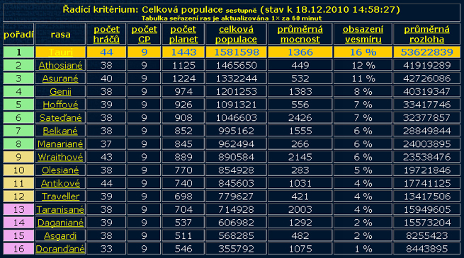 Probíhá už 11. den věku (12.2010 – 13.2011), naše rasa začala tento věk v plné polní s maximálním nasazením. Držíme si s mírným náskokem odstup od zbytku tabulky a jen tak se nechystáme změnit naší pozici v tabulce. 😀